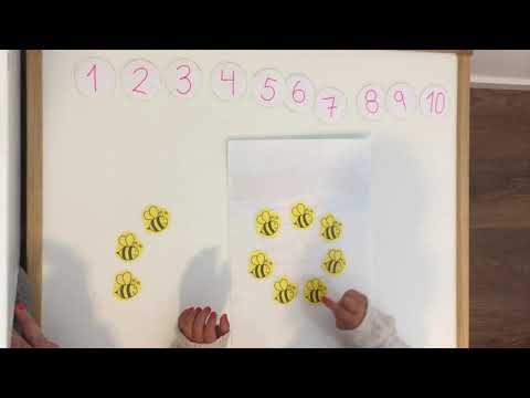 Si vuestro hijo es más mayor o contar hasta el 10 le resulta muy sencillo, podéis imprimiros dos veces las abejas y los círculos y tener material hasta el número 20.